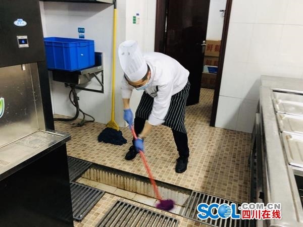 “上到天花板,下到下水道,都要进行清理与消毒。”上午8时,省生态环境厅食堂的16名工作人员全部到岗,戴上口罩与手套,在对整个食堂区域的地板与天花板进行了全覆盖式清洁工作后,又用稀释过的84消毒液进行消毒。省生态环境厅机关食堂负责人何路说,“为保障机关职工的就餐安全,这一次大扫除必须做彻底。”