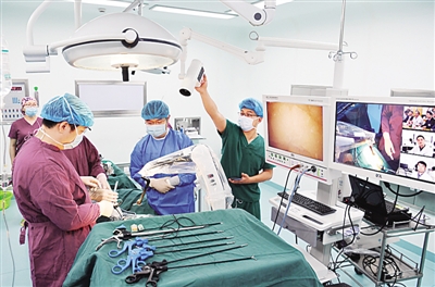 安徽省石台县人民医院医护人员通过5G远程协同操作平台,在安徽医科大学第二附属医院专家的指导下进行手术操作。新华社发