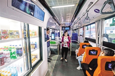 观众在第九届中国智慧城市与智能经济博览会上参观智能公交车。新华社发