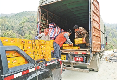 疫情来袭,众志成城。面对“战疫”与“战贫”的双重考验,广西5300多名驻村第一书记提前结束春节假期,“逆行”奔赴贫困乡村,既当疫情防控尖兵,又做脱贫攻坚战将。图为乐业县百坭村驻村第一书记帮村民搬运农产品。新华社发