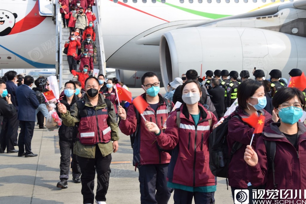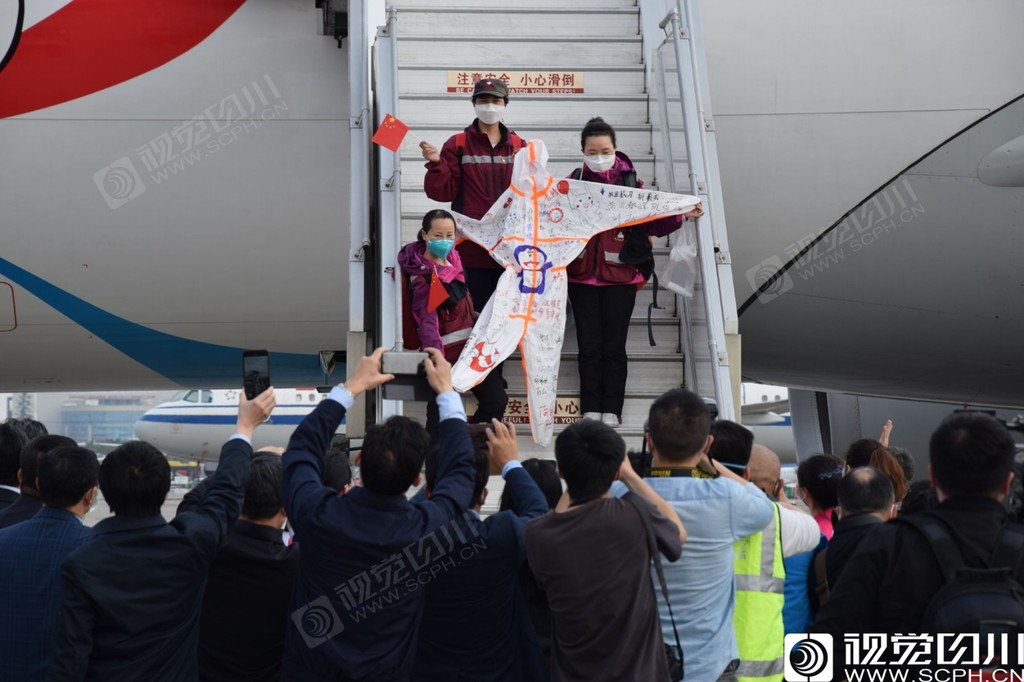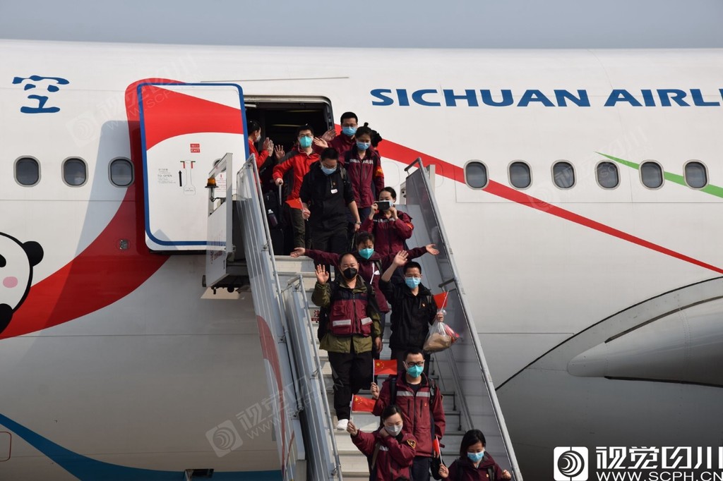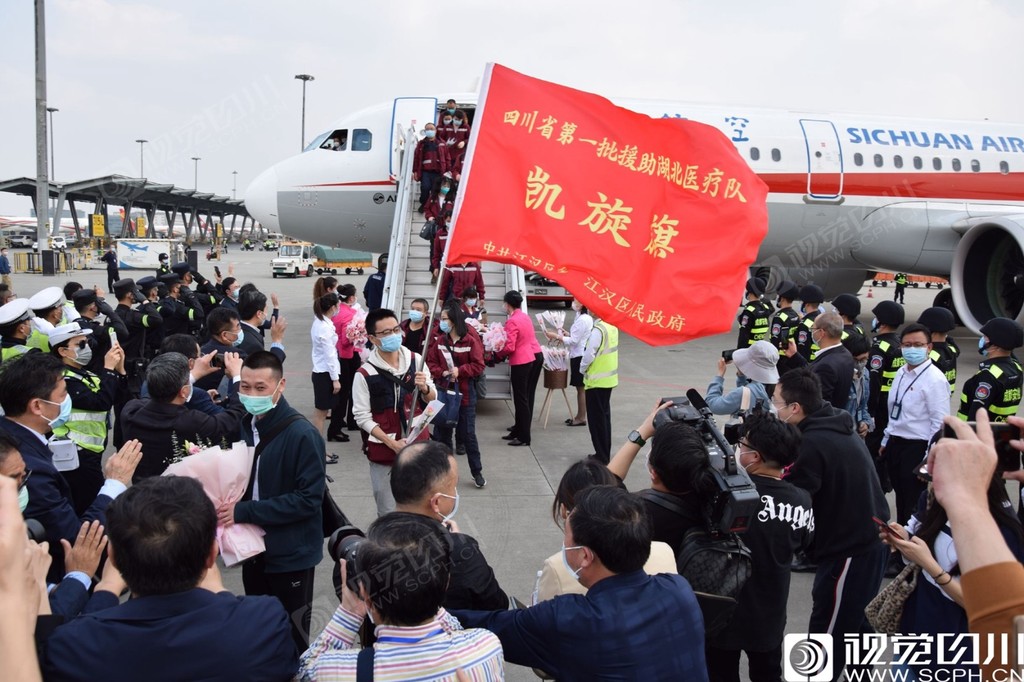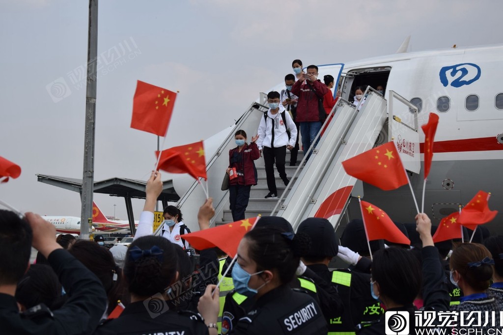 3月21日15点38分起,载有四川援鄂医护人员的2驾民航客机缓缓滑进成都双流国际机场停机坪,标志着四川援助湖北医疗队第三批313名撤离队员陆续平安回到四川。