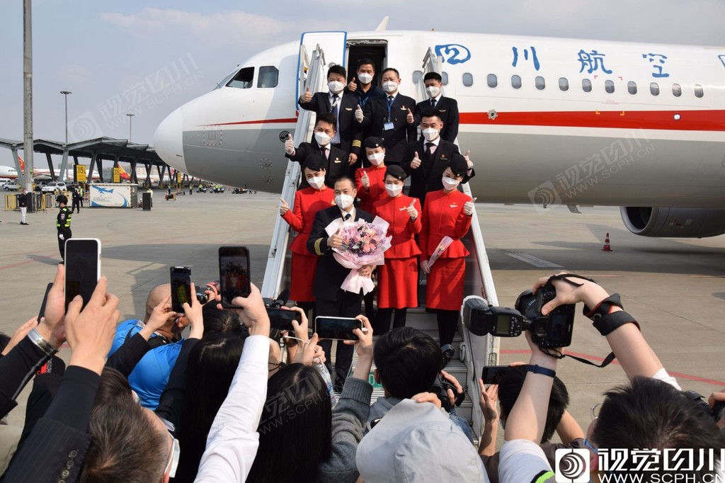此次回川的医疗队队员分别搭乘川航3U3102、3U3104航班,其中3U3104次航班由“中国民航英雄机长”刘传健执飞。在此之前,他曾执飞了四川省第三批援助湖北医疗队医护人员乘坐地航班奔赴武汉前线。
