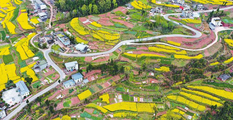 3月13日,航拍的南江县正直镇宝塔村通往龙山村的“四好农村路”。 肖定怀 摄(视觉四川)