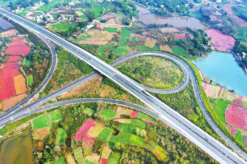 连日来,仁沐新高速公路加大马力推进建设。图为近日航拍的已通车的仁沐新高速公路仁井段。 潘建勇 摄(视觉四川)