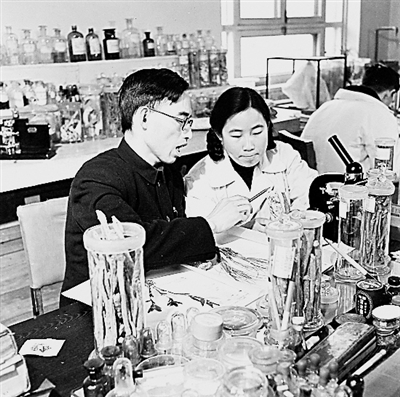20世纪50年代,屠呦呦(前右)与老师研究中药。资料图片
