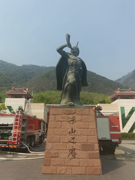在此基础上,来自成都市消防队的5辆消防车和几十名消防队员从昨天开始一直在馆里严阵以待,今天早上,火线逼近的时候,专业队伍开始了一个多小时的反冲锋,击退了山火。