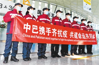 日前,中国赴巴基斯坦抗疫医疗专家组成员在乌鲁木齐国际机场参加出征仪式。新华社发