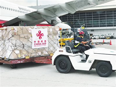中国政府援助马来西亚抗疫物资抵达马来西亚吉隆坡国际机场。新华社发