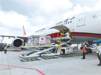 中国政府援助马来西亚抗疫物资抵达马来西亚吉隆坡国际机场。新华社发