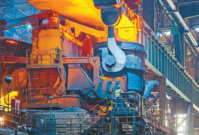 近日,安徽马钢特钢公司生产线一炉优质钢水落位准备浇铸。3月,该公司精品特钢产量达8.2万吨,重点产品销售量逆势增长。罗继胜摄(影像中国)