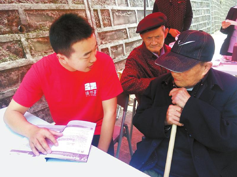 ④2015年7月在蒲江县大塘镇敬老院为老人读书服务。 本文图片除署名外由“3+2读书荟”提供