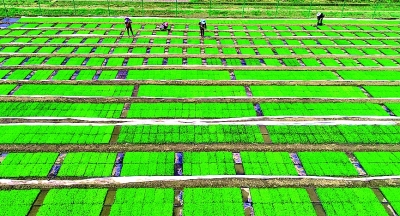 四川省成都邛崃市天府现代种业园,以杂交水稻、油菜种业为基础,聚集了27家种业及关联企业,建成种业基地3.5万亩,为当地重要育种基地。随着疫情得到有效控制,种业园抓紧育种,为今年大春生产提供充足种苗。图为4月24日,专家在水稻育苗试验田培育水稻种苗。雷建摄/光明图片