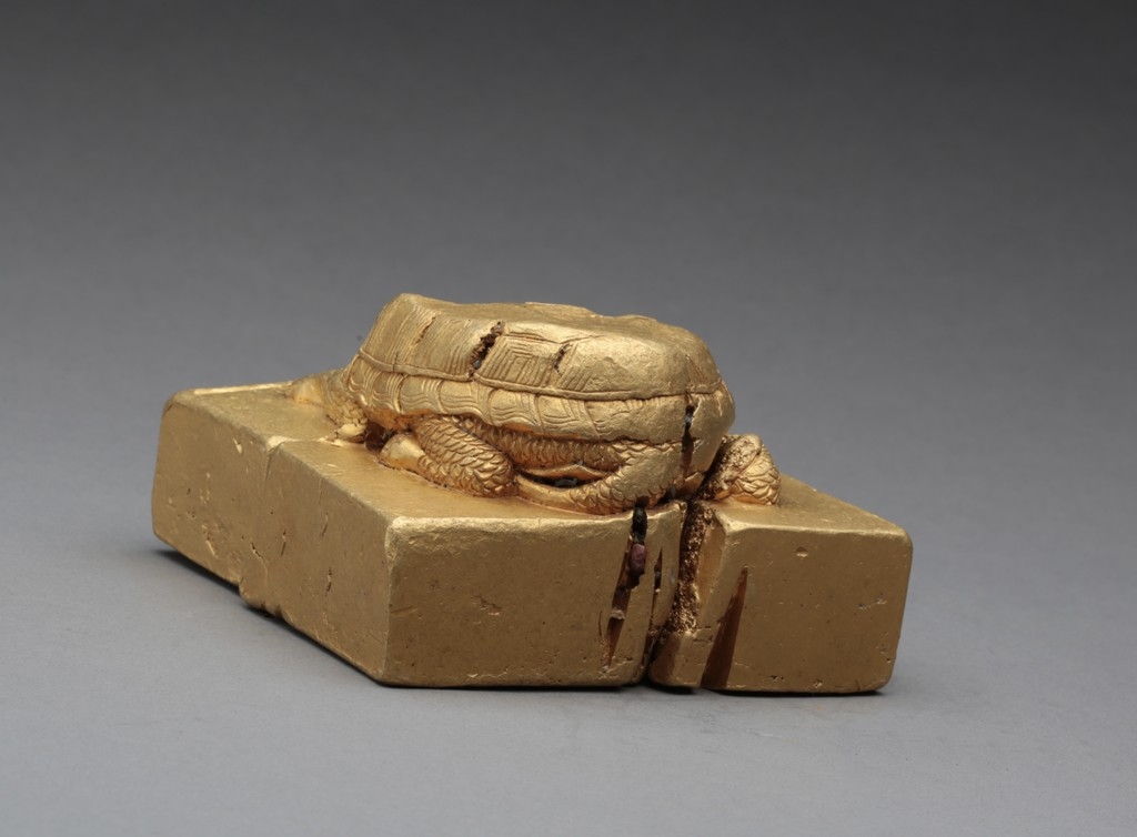从去年11月开始围堰进行的第三次考古发掘,再度出水1万余件文物,其中重要文物2000件,大多数为金银器。包括金、银币,金、银锭,金、银食具,金、银首饰和金、银服饰等。其中最为重要的是发现了一枚金印。记者看到,这件金印为方形印台、龟形印钮,印面铸有“蜀世子宝”四字。考古人员介绍,印台边长约10厘米,总重约16斤,含金量高达95%!尽管金印发现时已断裂为5块,仍可从龟钮的鳞形皮肤的刻画细节上,看得出其雕琢的精致。数百年在江底的侵蚀,仍未能掩其夺目金光。