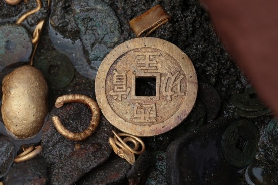 不仅如此,考古人员在发掘时,还发现了文物按不同金属属性集中分布的情况。在“蜀王至宝”发现的地方,还同时堆积了金锭、金耳环、金手镯等黄金制品;而在有的区域,则大量发现银锭等同类物件,其中一处仅“嘉定府”的银锭就发现了8枚。“这其实可以推测张献忠撤离成都时并不是想象中那么慌乱。”刘志岩说,这些收刮来的金银财宝,未来还将被张献忠作为军资,因此离开成都以前,他将其分门别类打包,分船、分类装好后才出发。也正是因为如此,300多年后才仍然在江底留下文物分类聚集的蛛丝马迹。