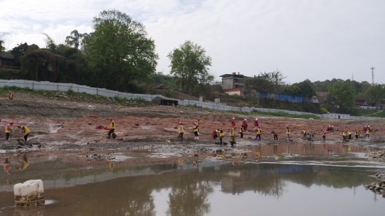 在此之前,考古人员已根据陆地调查和水面探测相结合的方式,将遗址划分为了五个区域,本年度的工作区域,就在前两期考古发掘的偏上游处。