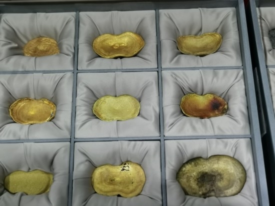 断裂成4块的“蜀世子宝”金光耀眼、龟钮上的鳞甲刻画精细工艺不凡;刻有“嘉定”“安县”等字样的大西政权官银50两一锭、摆得密密麻麻;各种来自民间的金银首饰、象征王权和功绩的金册、金币,同样不计其数……29日上午,本期江口明末古战场遗址出水文物向媒体开放,仍然带来强烈的视觉震撼。