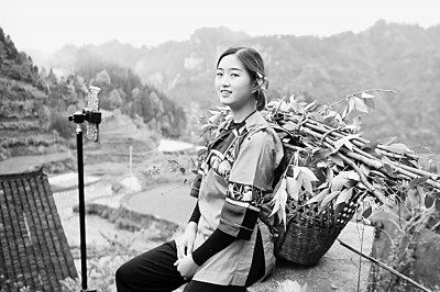 移动互联时代,短视频、网络直播等平台异常火爆,这些平台上的内容创作是否受著作权法保护备受关注。图为湖南湘西土家族苗族自治州十八洞村的施林娇在山上边砍柴边做直播。新华社发