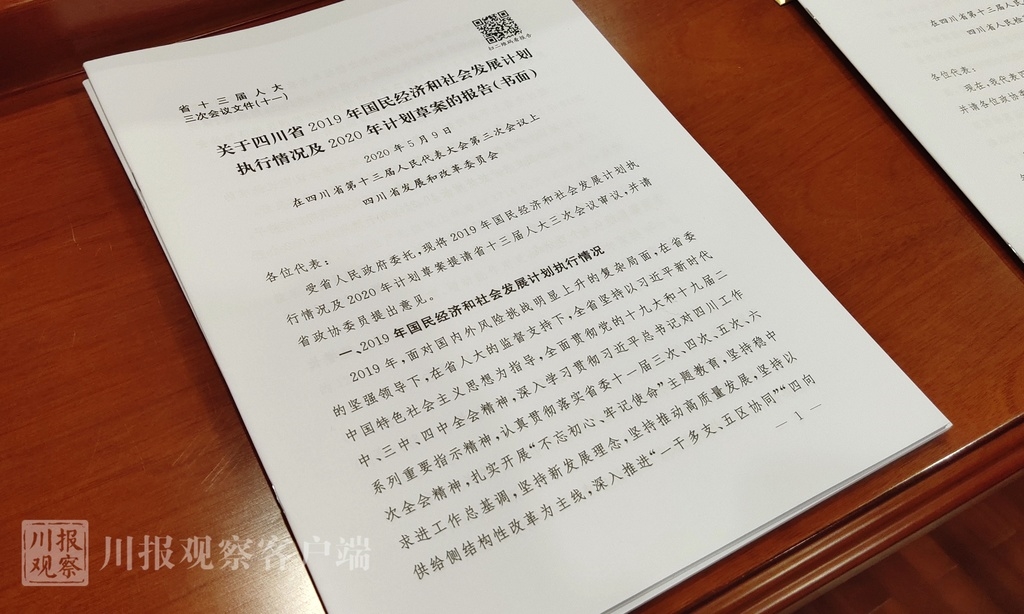 5月9日上午,四川省第十三届人民代表大会第三次会议在成都开幕。《关于四川省2019年国民经济和社会发展计划执行情况及2020年计划草案的报告》以书面方式提交省第十三届人民代表大会第三次会议审议,并请省政协委员提出意见。