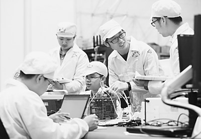 紫丁香学生微纳卫星团队在日常测试现场。资料图片