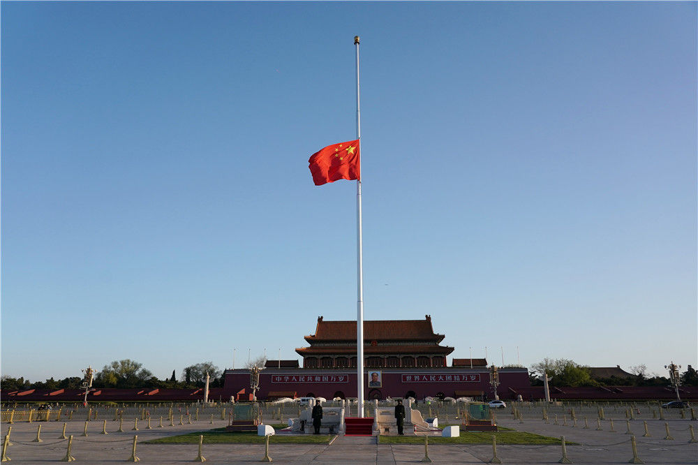 国旗半垂,举国同悲。4月4日上午10时,习近平等党和国家领导人同14亿中国人民一起默哀3分钟,深切悼念抗击新冠肺炎疫情斗争牺牲烈士和逝世同胞。