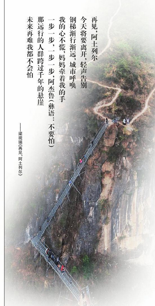 5月13日,“悬崖村”——凉山州昭觉县支尔莫乡阿土列尔村迎来“大喜日子”。这一天,高山区31户贫困老乡走下2556级钢梯,搬入县城集中安置点的新家。跨过悬崖去城市,本报记者全程记录了他们搬家的这一天。