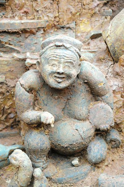 这处编号M94的墓葬,结构完整,是四川乃至西南地区一座罕见且保存完整的汉末三国时期中小型单室崖墓,出土了鎏金环首铜刀、造型滑稽的说唱俑、摇钱树和仙山底座、彩绘持盾俑、彩绘陶楼等精美文物,具有较高的历史价值和艺术价值。汉代墓葬厚葬成风,常遭盗墓贼光顾且不易保存,故有“汉墓十室九空”的说法。而这座幸存的完整汉末三国墓,提供了宝贵的考古材料。