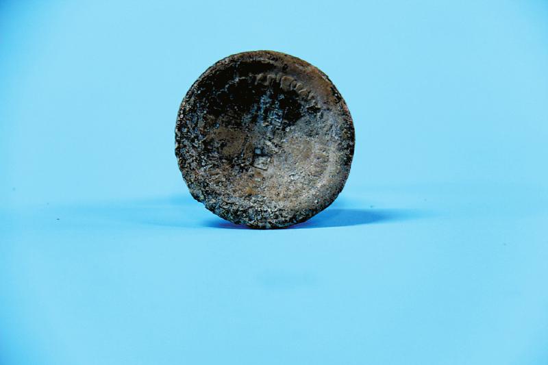 这件“龙纹铅饼”发现于一座西汉时期的岩坑墓。铅饼背面隐约可见一条腾云驾雾的飞龙,正面在铅饼周延刻上了一圈外文字母,中间的方形戳记可见“少”字铭文。中国人民银行博物馆相关专家识读后认为,这可能是古希腊文或者贵霜帝国(公元1世纪至5世纪,疆域位于今塔吉克斯坦绵延至里海、阿富汗及印度河流域的一个古国)文字。“少”字铭文,则正好印证史书记载西汉武帝时“少府”铸造“白金三品”货币的记载。因此,考古人员推测这件“铅饼”应是“白金三品”之一的龙币。