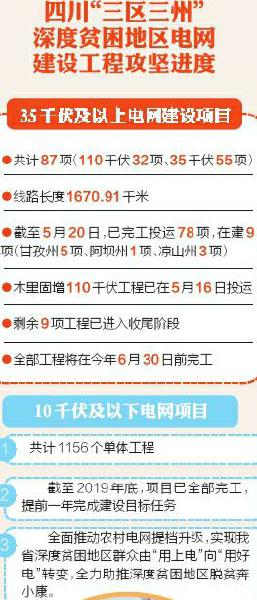 今年6月30日前,“三区三州”深度贫困地区电网建设项目将全部竣工投运。国网四川电力正以更大决心、更强力度、更实举措,确保高质量完成脱贫攻坚和“三区三州”深度贫困地区电网建设任务,坚决助力打赢脱贫攻坚战。