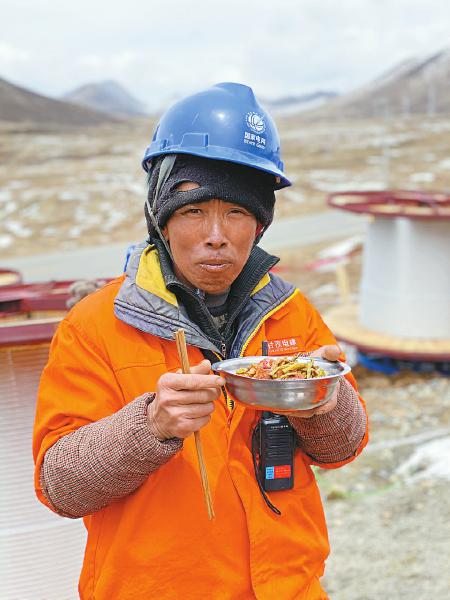 “5分钟不吃完,饭菜就全凉了。”一位施工人员说,在海拔4000米以上的施工一线,他们已经习惯了这样的吃饭速度。