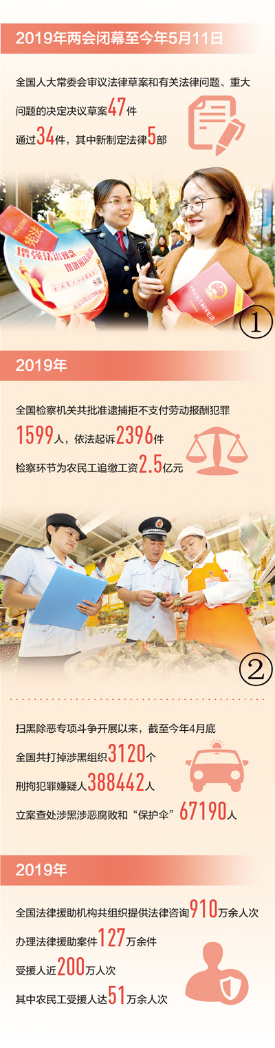 2019年以来,全国人大常委会围绕中心、服务大局,制定或修订出台了证券法、疫苗管理法、法官法、检察官法等一系列法律制度。“及时、务实、权威、管用。”中华全国律师协会副会长吕红兵委员说,一年多来,全国人大常委会制定或修订的一系列法律,为保障人民群众生命健康安全提供了有力的法治保障。