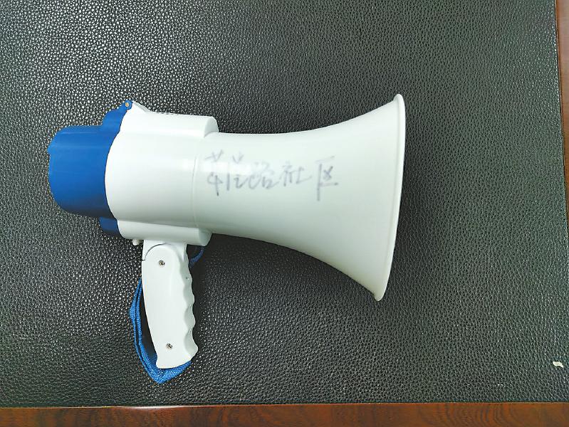 此次抗疫纪念物品的征集,草堂路社区送来了一把用烂的小喇叭。疫情发生以后,草堂路社区工作人员和热心市民开始到辖区里的20多个院子展开相关防疫宣传,提醒大家“戴好口罩,少出门、少聚集、少聚餐”,政府新出的公告传达到位。大家嗓子很快吼哑,于是购买了3个喇叭支援。没想到不到一个月,一个喇叭便因使用频率过高“阵亡”。