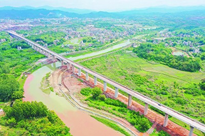 日前,江西赣州至深圳高速铁路五标段开始无砟轨道混凝土浇筑施工。新华社发
