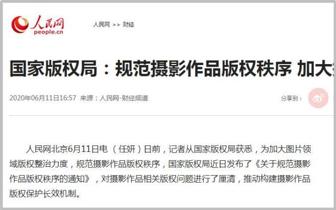 人民网对国家版权局发布《关于规范摄影作品版权秩序的通知》进行报道
