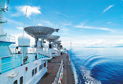 承担海上测控通信任务的远望6号船在任务海域静待发射。中国卫星海上测控部供图