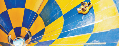 6月25日,游客在山东烟台37度梦幻海水乐园体验“深海龙卷风”游乐项目。唐 克摄(新华社发)