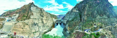6月29日,位于云南、四川交界的金沙江乌东德水电站首批机组投产发电。图为乌东德水电站大坝一景。新华社记者 胡超摄