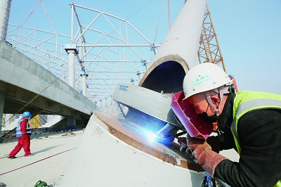 成都一工地上的工人正抓紧施工。资料图片