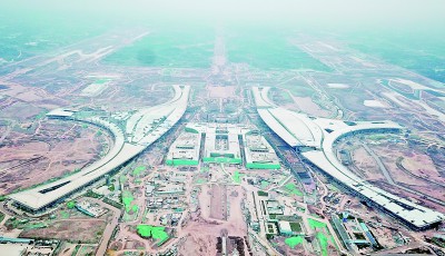 俯瞰成都天府国际机场航站楼主体工程。资料图片