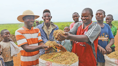 在中国专家的指导下,布隆迪布班扎省吉航加县的农民取得水稻大丰收。本报记者 吕 强摄