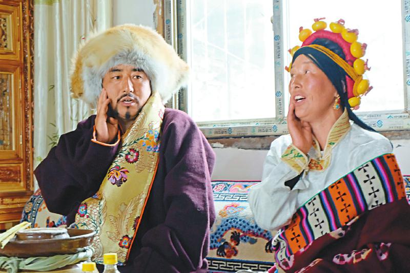 阿旺(左)演唱多声部民歌。