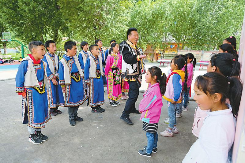 不过,这些远古的艺术种子,要在时间的更迭中重新长出新芽,并不是一件容易的事。令泽旺仁青忧虑的是,虽然目前孩子们学会了自己民族的歌曲,但在实际生活中,其实已经没有了自己那时的“唱歌环境”,对孩子们影响最大的,是流行歌曲等带来的巨大冲击。“由于流行歌曲的发声方式和原生态多声部民歌不同,孩子们用嗓或多或少也会受到影响。”为此,他也只能在每周有限的两节课时间里,尽量让孩子们多听多唱。