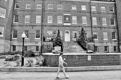 7月7日,一名男子走在美国华盛顿的乔治敦大学校园内。新华社发
