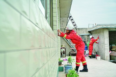7月12日,消防救援人员在唐山市古冶区卑家店镇前巍峰山村村民家中排查险情。 新华社记者 牟宇摄