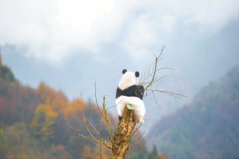 卧龙神树坪基地内的大熊猫。 本报记者 何海洋 摄