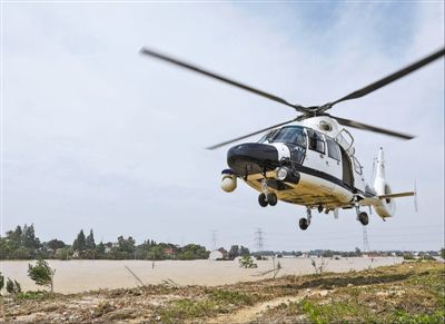 22日,安徽合肥市庐江县,警用直升机飞往灾区救援群众。左学长摄(影像中国)