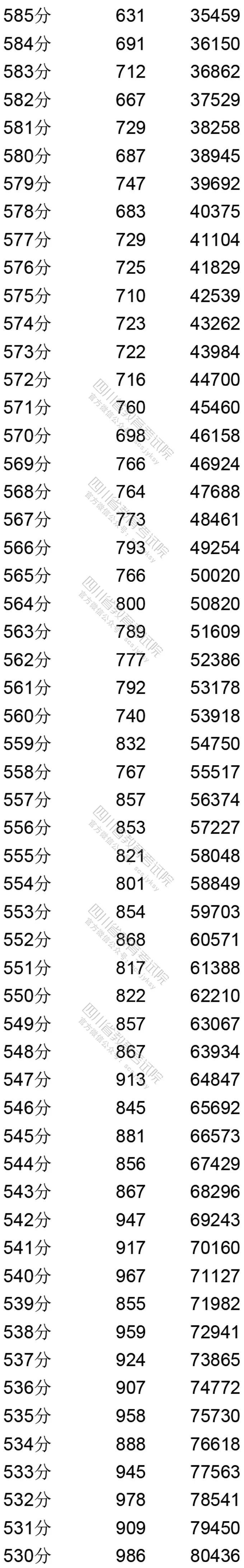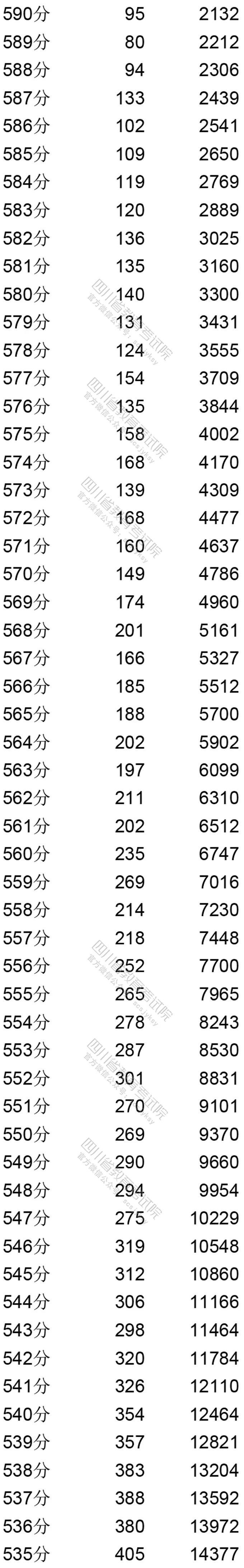 四川省2020年普通高考文、理科成绩分段统计表出炉