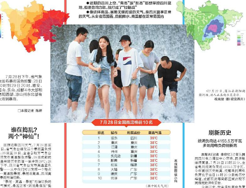 ●像这样高温、暴雨无缝衔接的天气,是四川夏季正常的天气。从全省范围看,目前降水、高温都在正常范围内