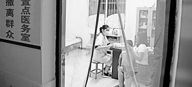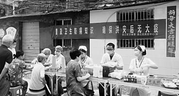 江西省景德镇市昌江区卫健委组建医疗小分队,到当地内涝严重的小区送医送药、宣传灾后防病知识。许荣崽摄/光明图片