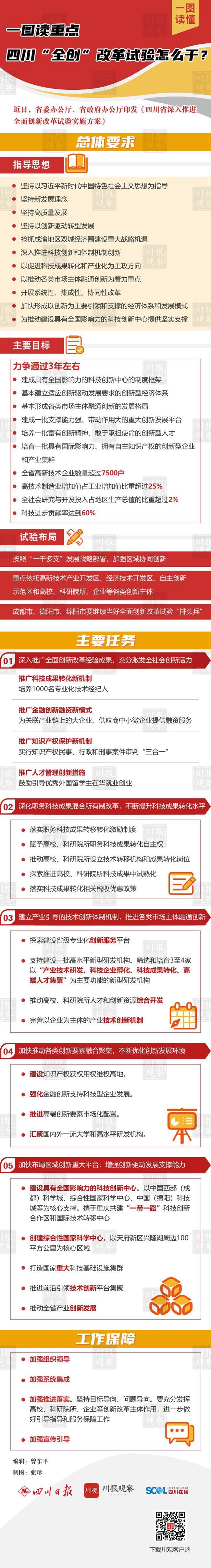 根据相关部署要求,我省日前出台了《四川省深入推进全面创新改革试验实施方案》《四川省深入推进全面创新改革试验重点事项清单》。