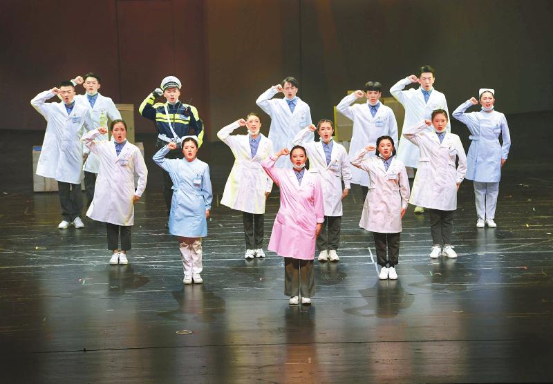 8月13日晚,抗疫题材原创音乐剧《遍地英雄》在四川大剧院演出。图为音乐剧剧照。 本报记者肖雨杨摄